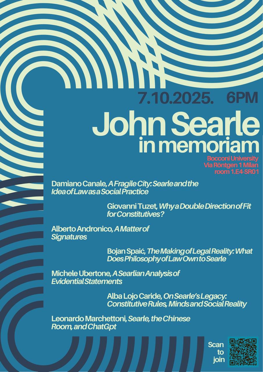 On October 7, 2025, Bocconi University will host John Searle in Memoriam Conference dedicated to reflecting on the intellectual legacy of John Searle.