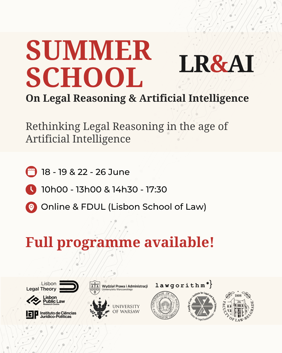18 – 19 & 22 – 26 June 10h00 to 17h30 Online & FDUL (Lisbon School of Law) Scientific Coordination: Pedro Moniz Lopes | Juliano Maranhão | Renata Wassermann | Bojan Spaic | Paweł Banaś Executive Coordination: Tiago Rodrigues Barboza Conducted in English Registration until 11 June Full Programme